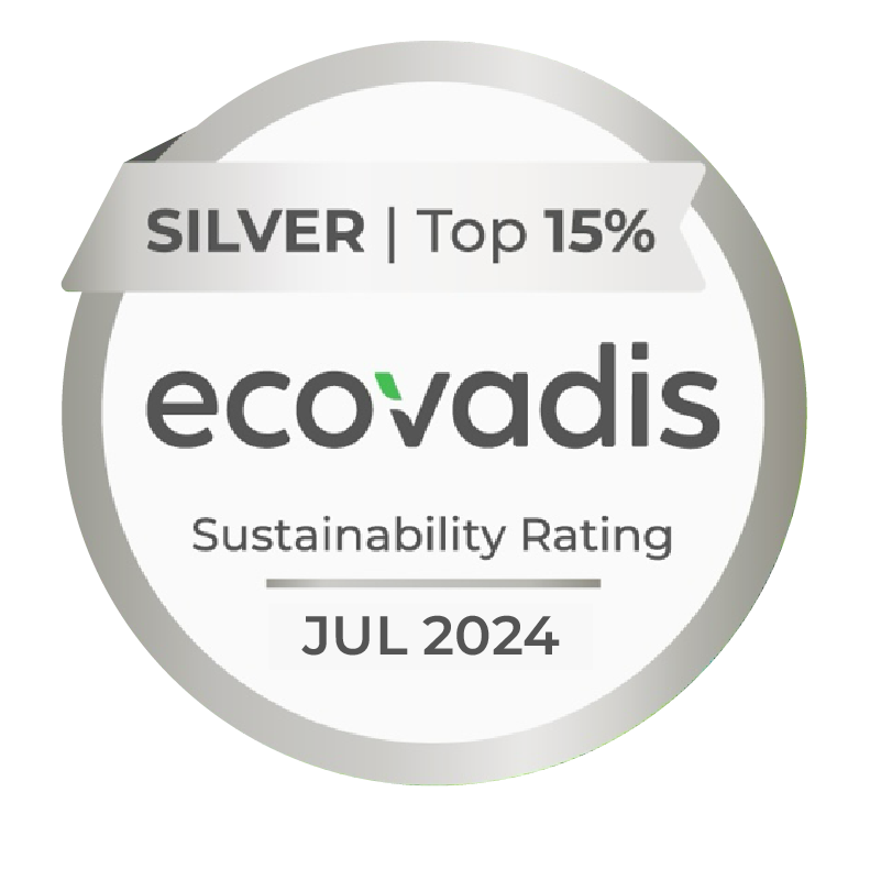 Estamos orgullosos de pertenecer a un selecto grupo de empresas a nivel mundial evaluadas por EcoVadis en la cual hemos sido acreedores de la medalla silver top 15% en el año 2024 por su compromiso en el cumplimiento de prácticas con responsabilidad social empresarial.